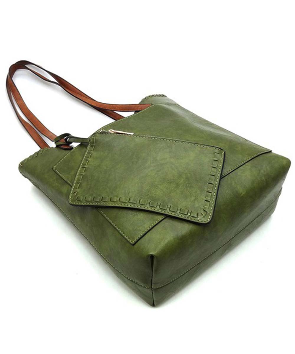 Fashion Front Pocket 2-in-1 Shopper Faux vegan leather Magnetic snap closure Gold-tone hardware 2-in-1 Bag (Shopper & Clutch) L 13.5 * H 12 * W 4.75 (11 D) L 8 * H 5 * W 0.5