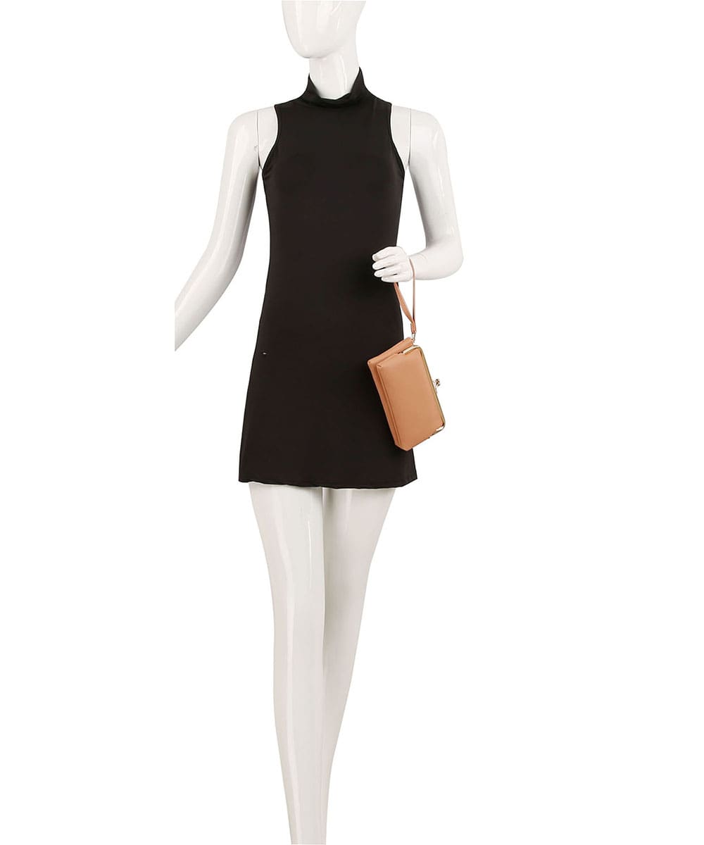 Fashion Kiss Lock Wallet Wristlet GLW-0145 TAN