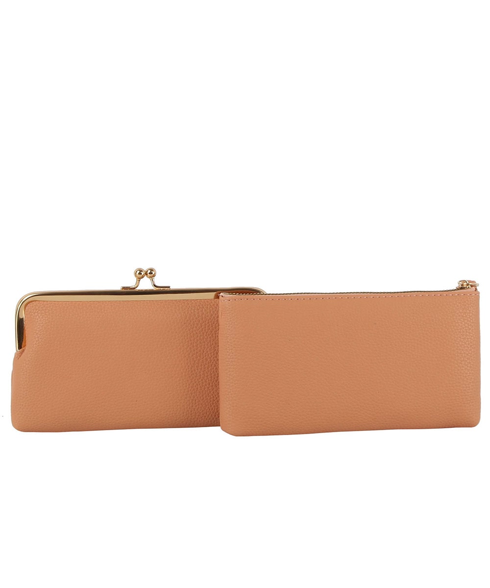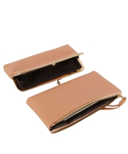 Fashion Kiss Lock Wallet Wristlet GLW-0145 TAN
