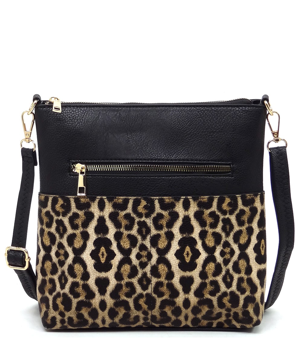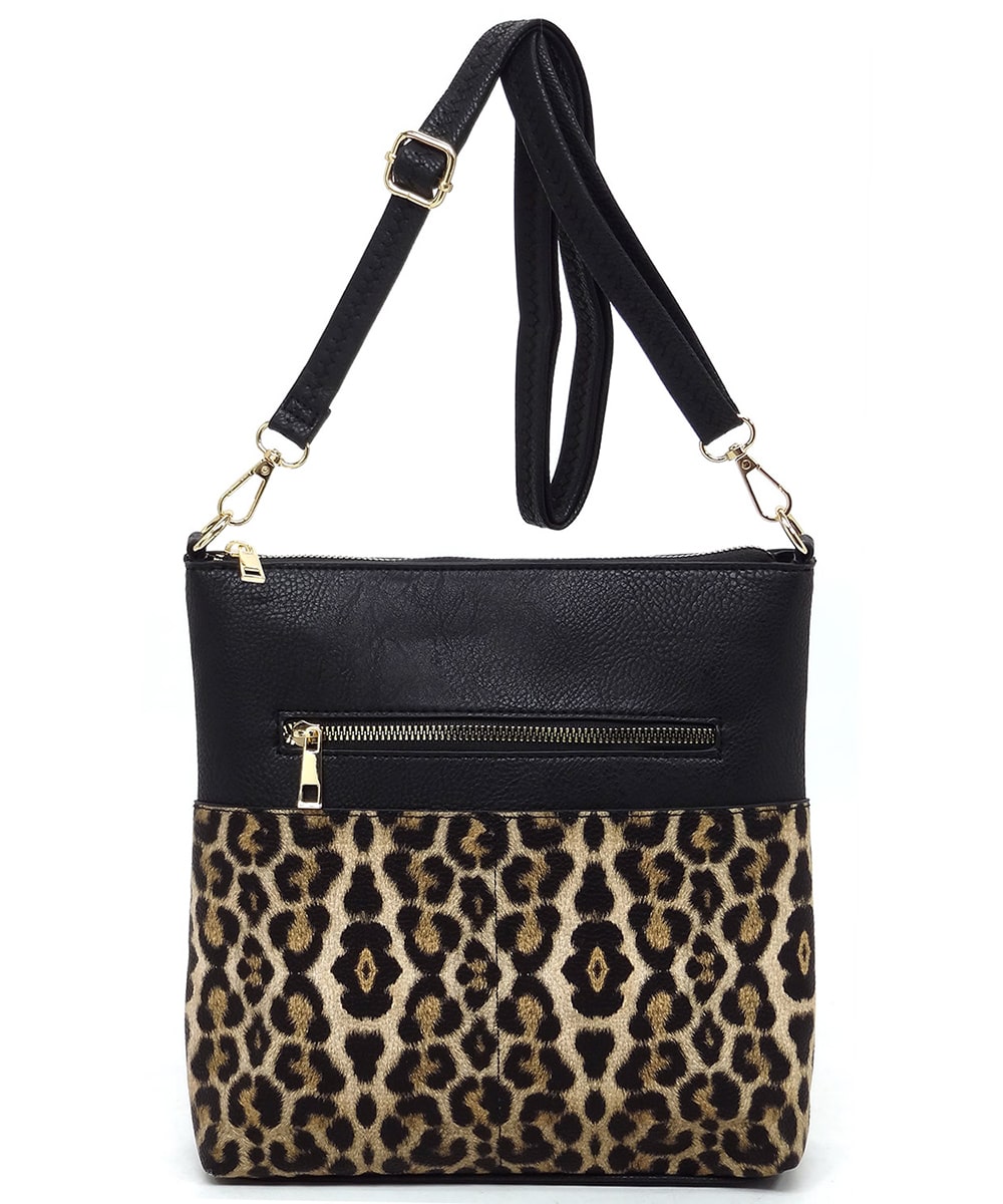 Fashion Pocket Crossbody Bag AD760 BLACK LEOPARD