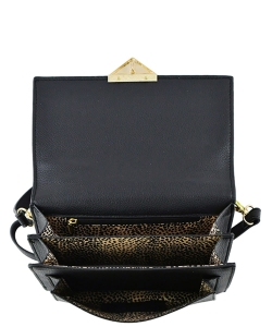 Fashion Push Lock Flap Crossbody Bag PF705 SILVER/