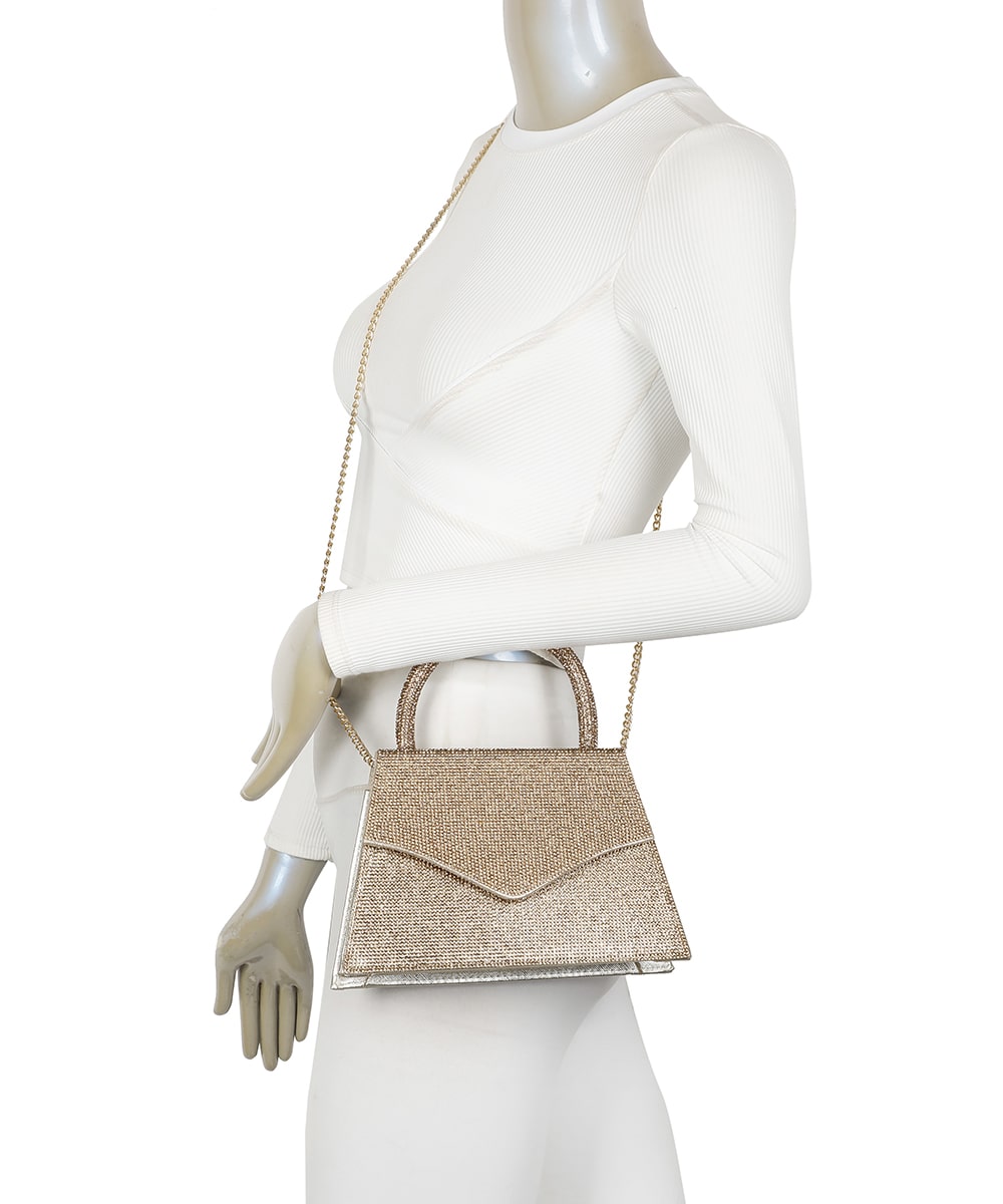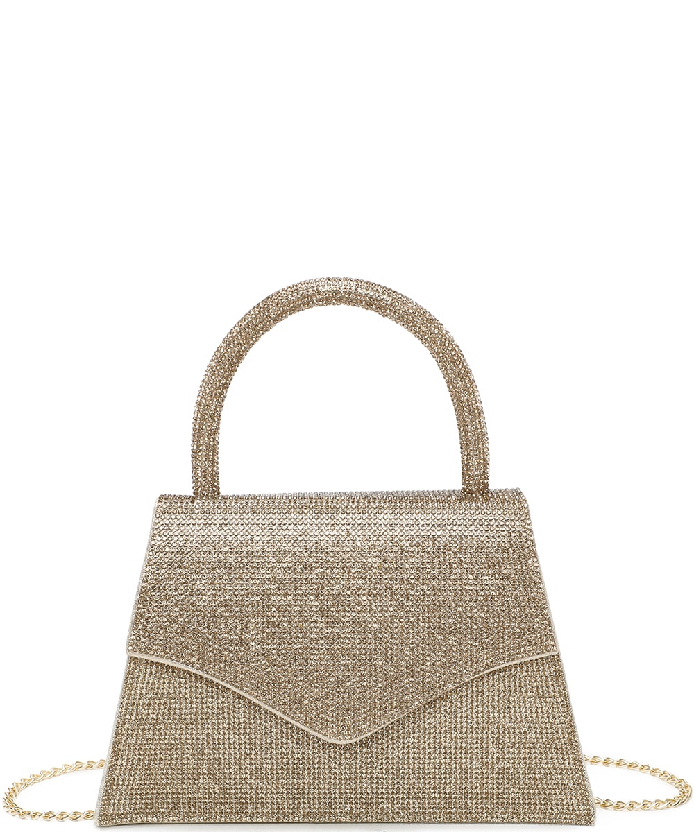 shine a light all night with a touch of rhinestones! this mini is perfect for a night out and carries all the essentials for a special occasion! square structure round flap with snap closure rhinestone embellished flap handle detachable chain shoulder strap small open inner pocketfashion