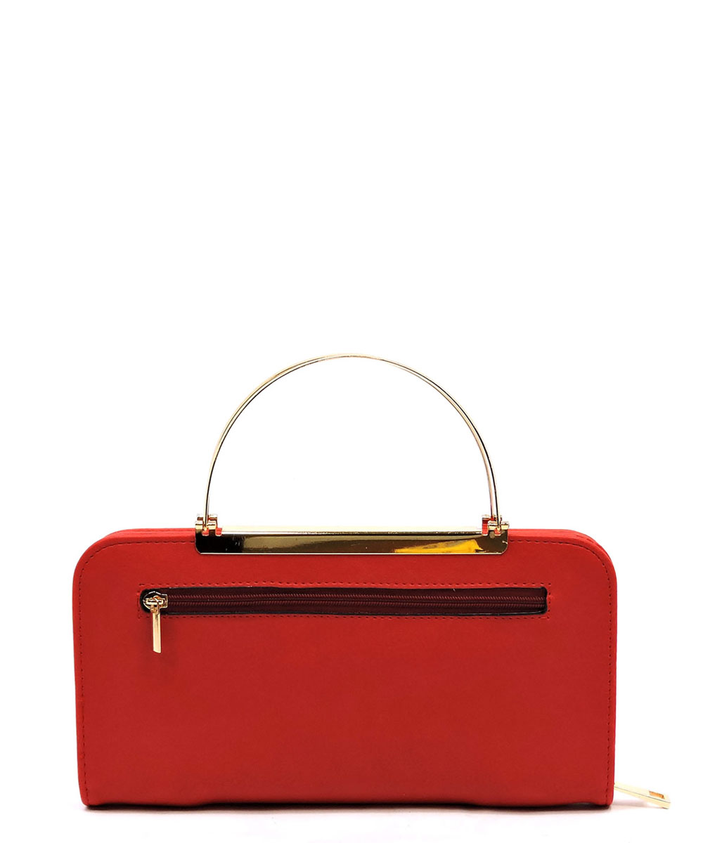 Fashion Round Top Handle Crossbody Clutch Wallet Faux vegan leather Zip around closure Gold-tone hardware Detachable shoulder strap L 8.5 * H 4.5 * W 1.75