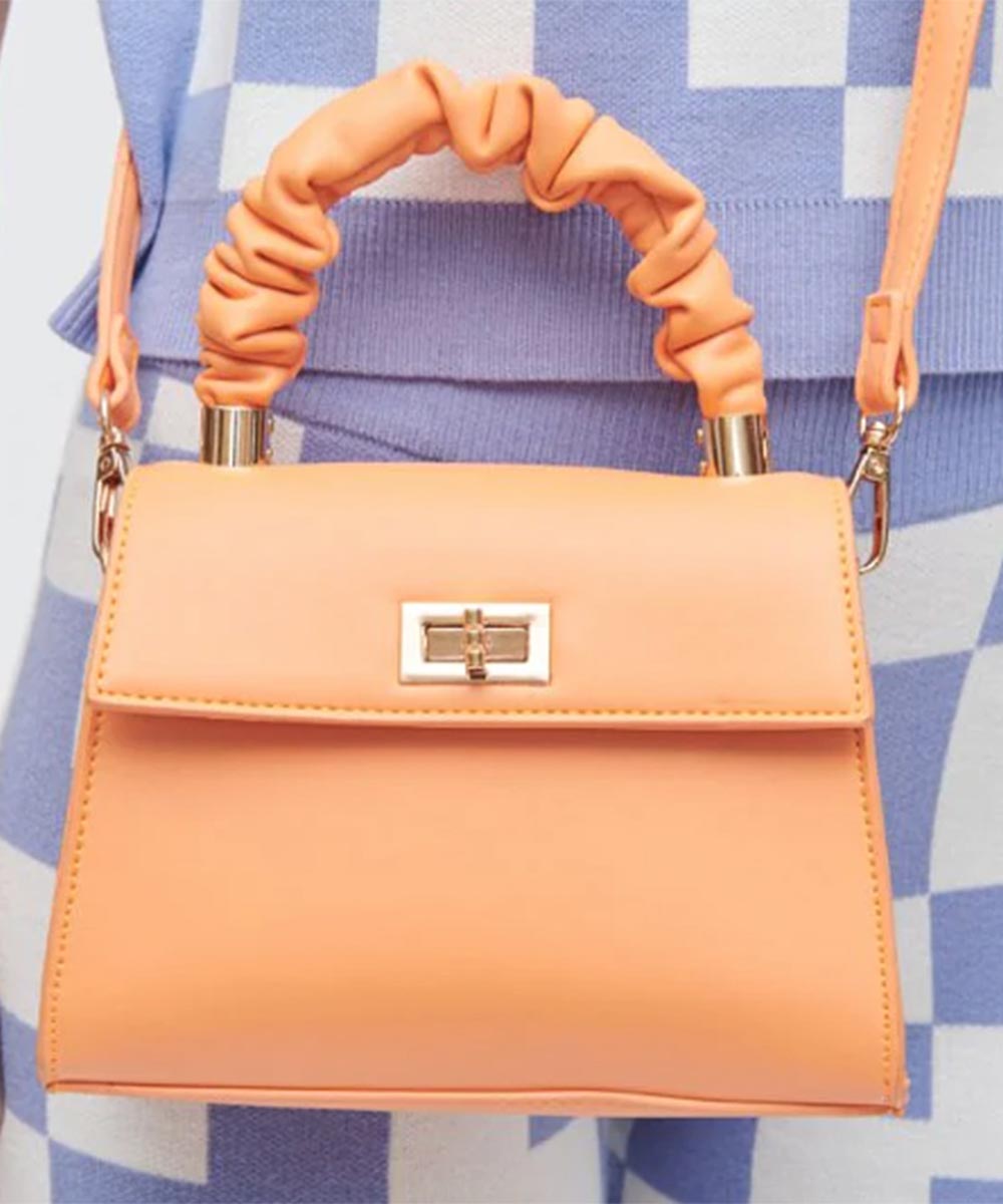 A crossbody that combines modern style with comfort and convenience! Crafted from lightweight vegan leather and featuring an adjustable shoulder strap and turn-lock closure, Rainey is definitely a bag you`ll want to take with you everywhere. The exterior features a scrunched vegan leather handle, giving it a luxe look plus tons of character. Gold hardware adds to its modern appeal - the perfect combination of glamour and edge. Item Type: Crossbody Material: Vegan Leather Closure: Turnlock Handle Drop: 3" Additional Shoulder Strap: 21.5" Exterior Details: Vegan leather, scrunched vegan leather handle , vegan leather strap, gold hardware Inside Features: Printed fabric lined, 1 slip pocket Dimensions: 7.25” L x 2.125” W x 5.125” H