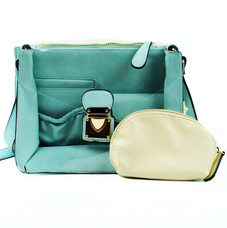 Fashion See Thru Messenger Bag w/ Zipper Coin Pouch -Blue