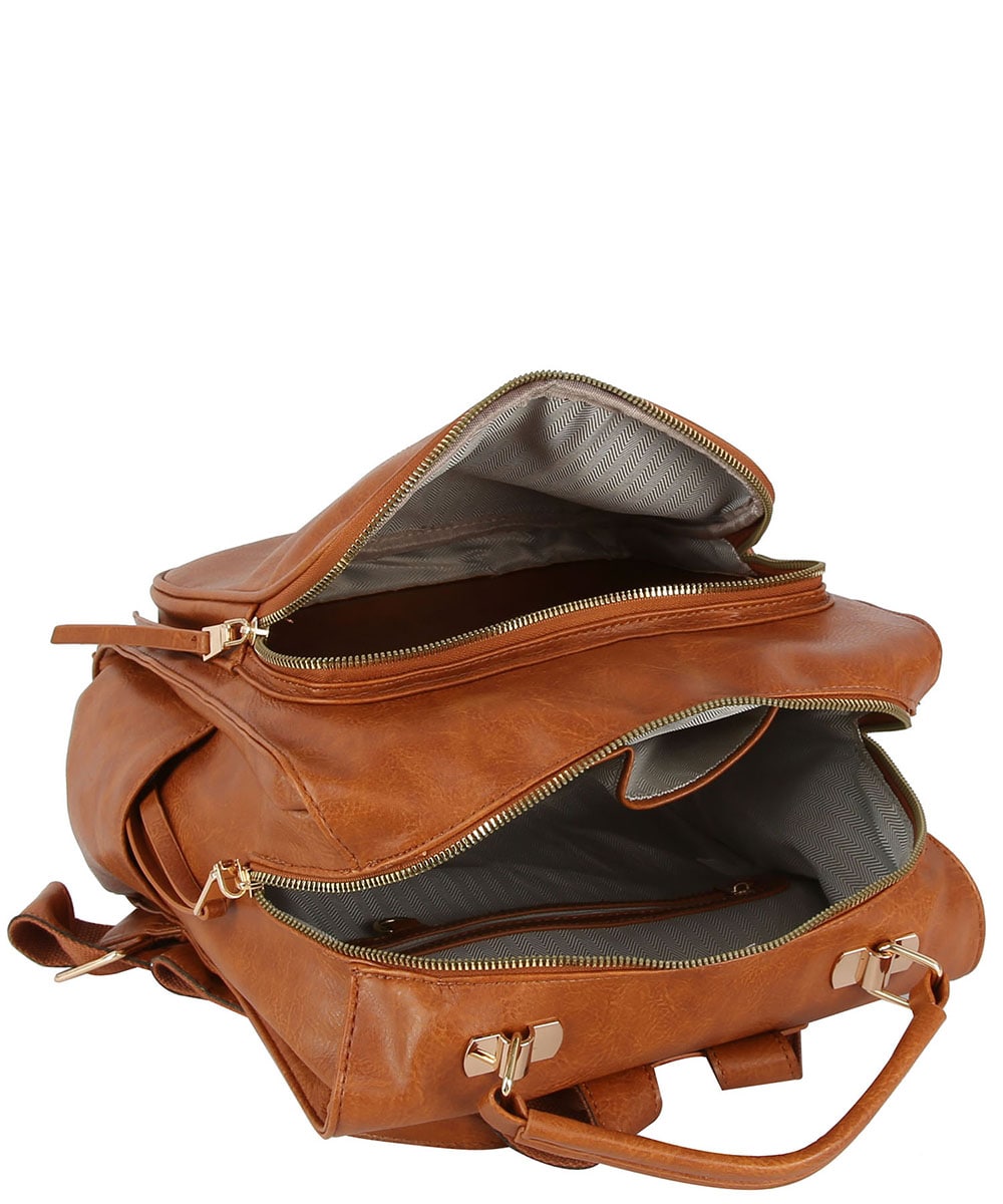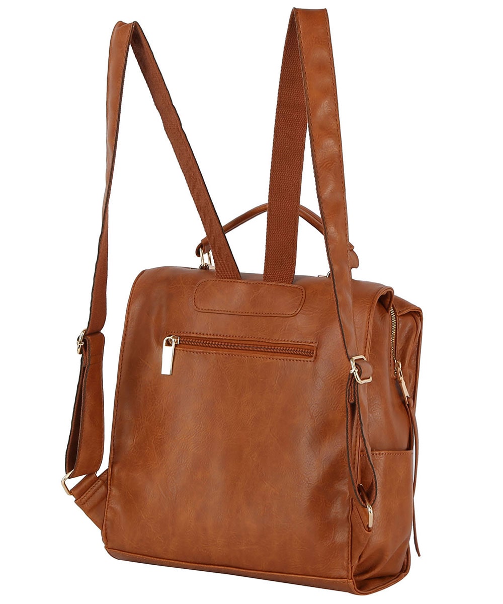 Fashion Buckle Flap Backpack CJF080 COGNAC