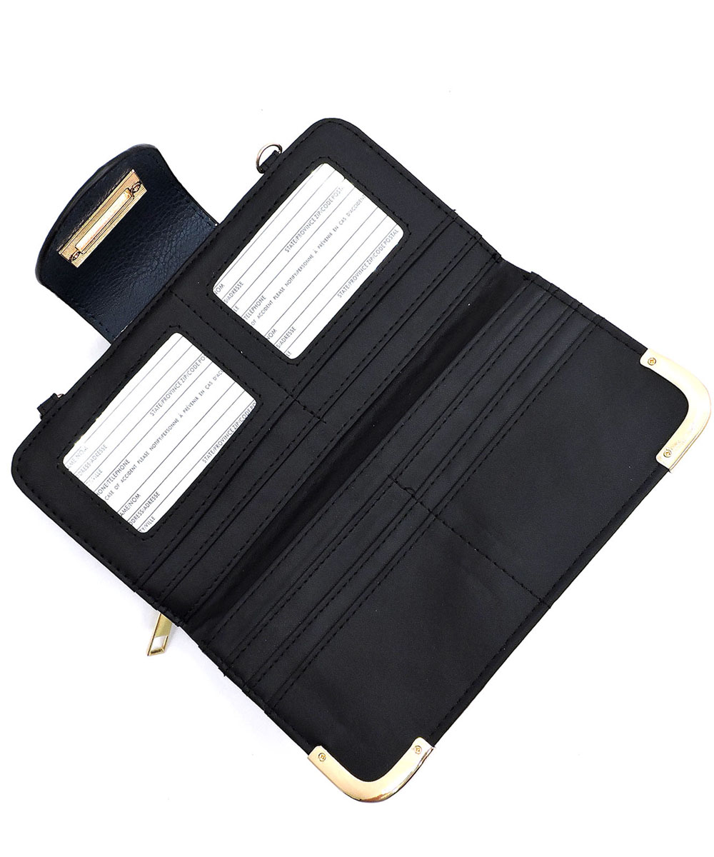 Fashion Turn Lock Crossbody Wallet AD041 BLACK