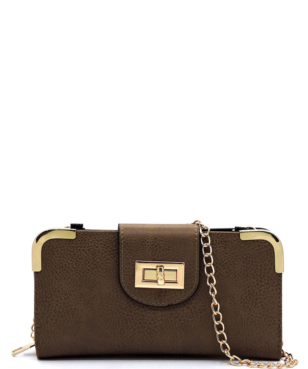 Fashion Turn Lock Crossbody Wallet AD041 BROWN