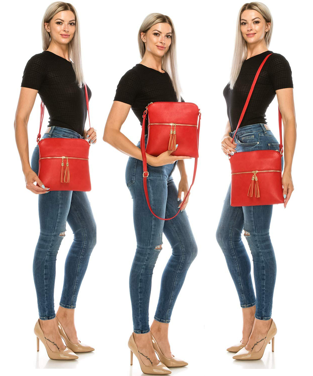 Fashion Zip Tassel Crossbody Bag LP062S RED
