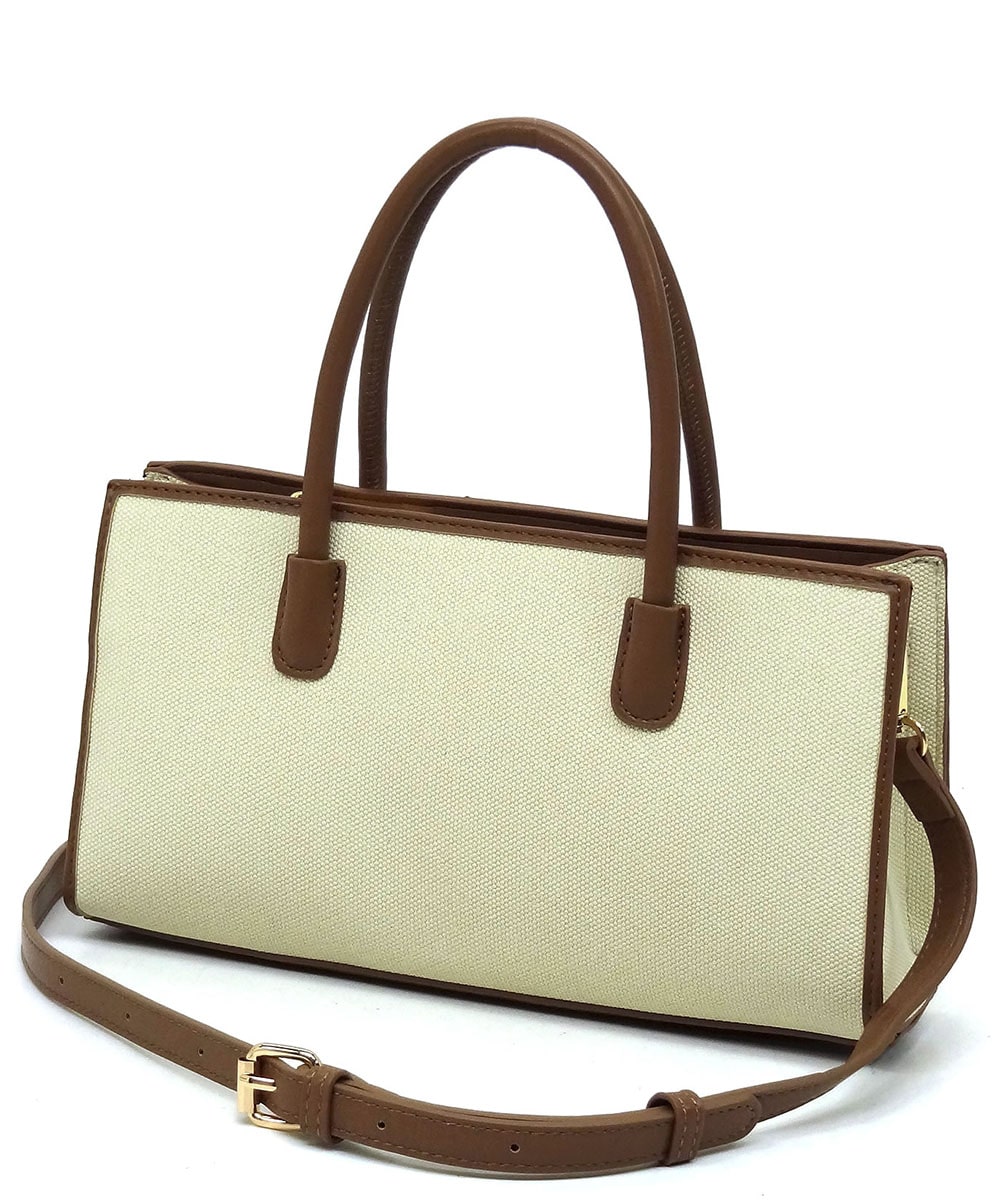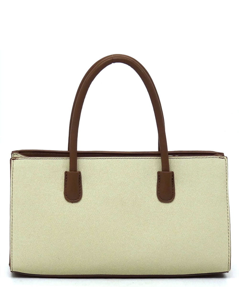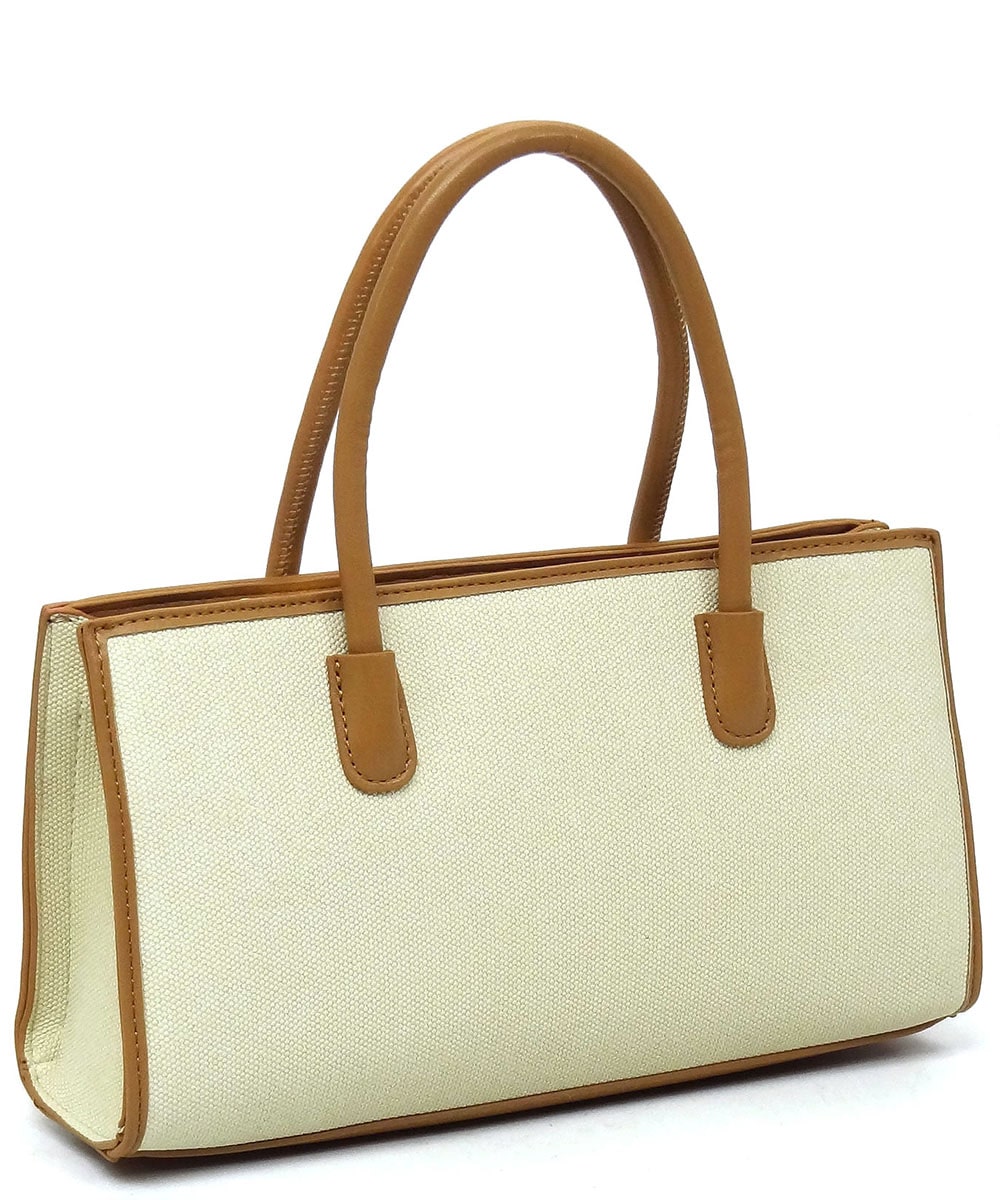 Faux Leather Canvas Satchel Bag CSD007 BEIGE