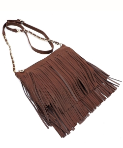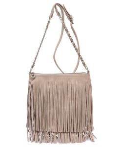 Faux Leather Fringe Hand Bag E031 STONE