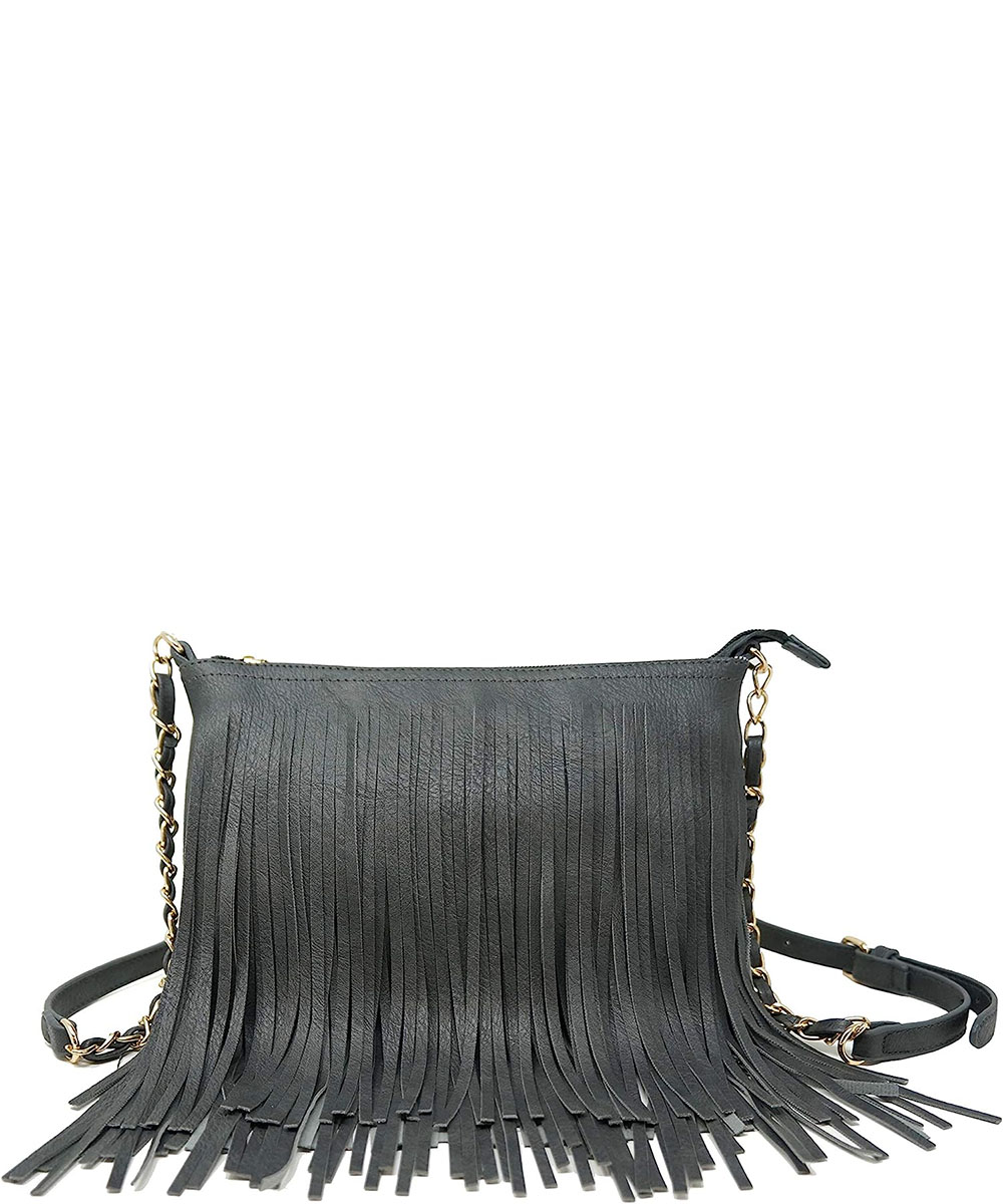 Fringed Shoulder Bag Tassel Cross Body E031 CHARCOAL