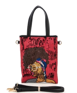 Glasses Girl Sequins Top Handle Convertible Swing Bag 136-S039-SM RED