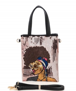 Glasses Girl Sequins Top Handle Convertible Swing Bag 136-S039-SM ROSEGOLD