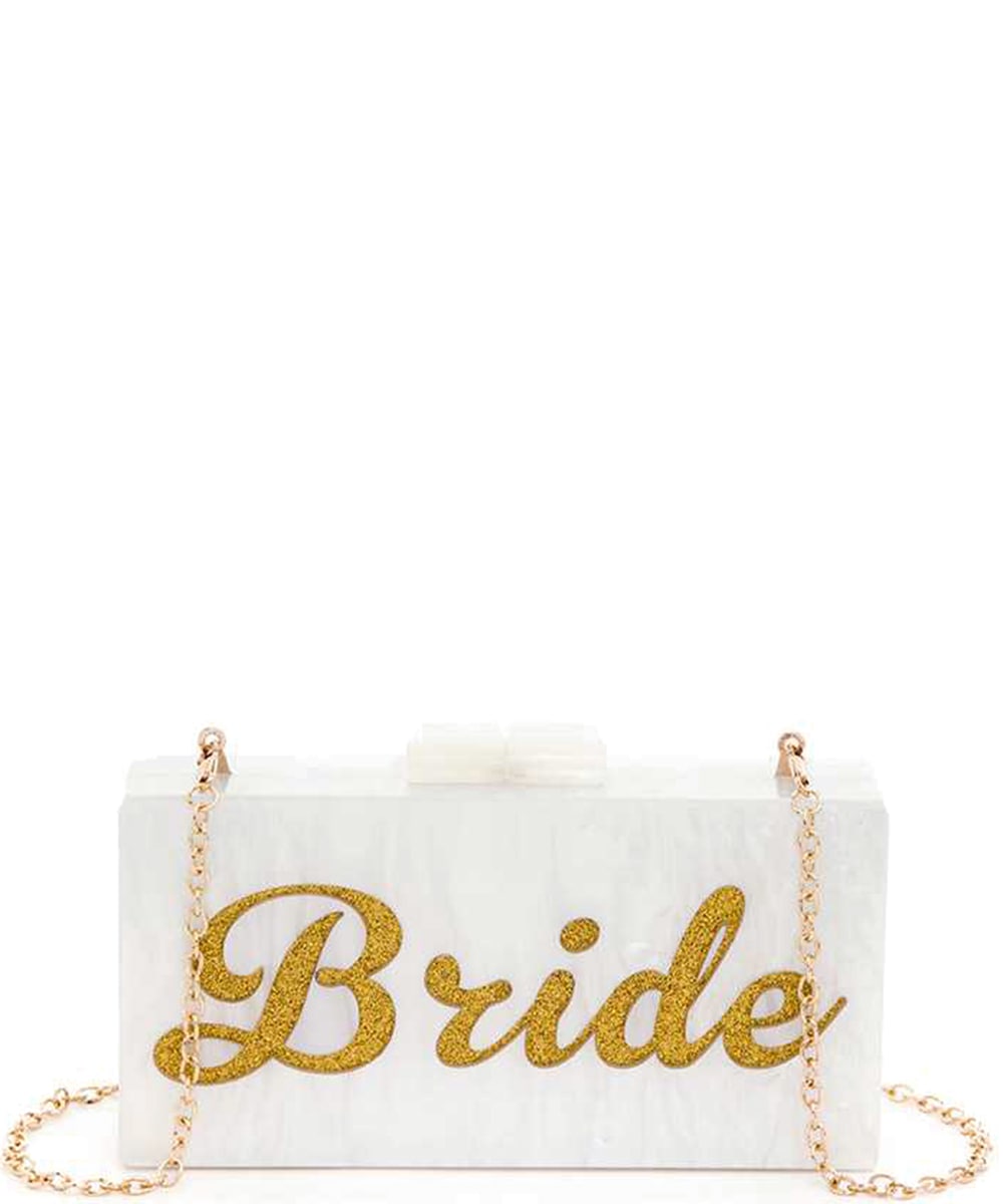 Glitter Bride Acrylic Box Clutch PPBRIDE SILVER
