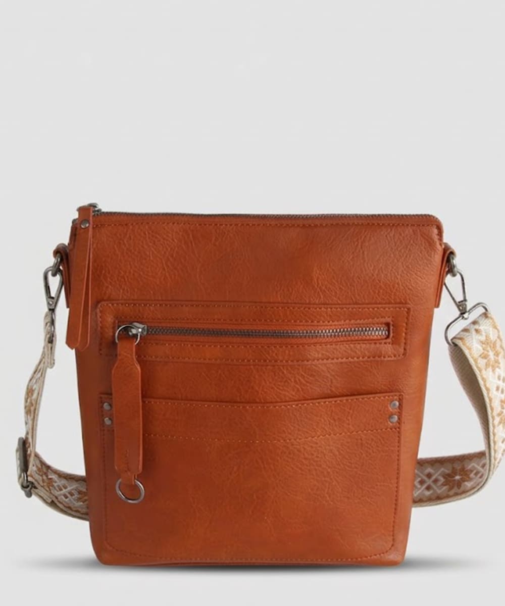 Ostrich Croc Multi Zip Pock...