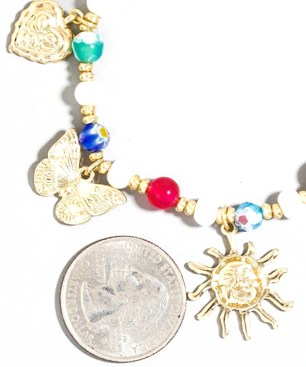 This bracelet features a fashionable heart butterfly and flower charms mixed beaded style. Delight in the nuanced details that make this bracelet a testament to fine design and impeccable taste.