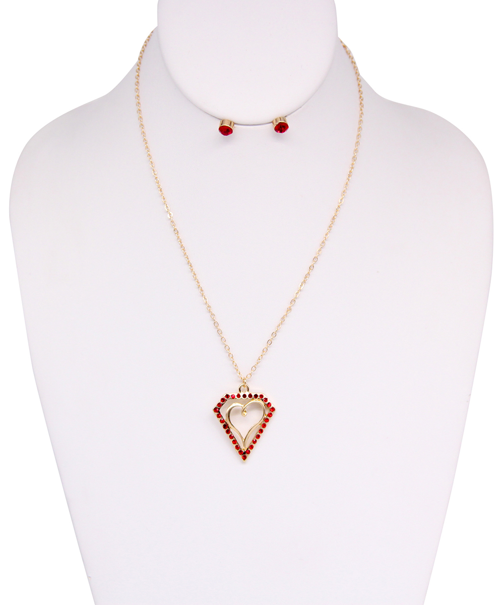 Heart Pendant Necklace with Earrings NB700114 GOLDLM