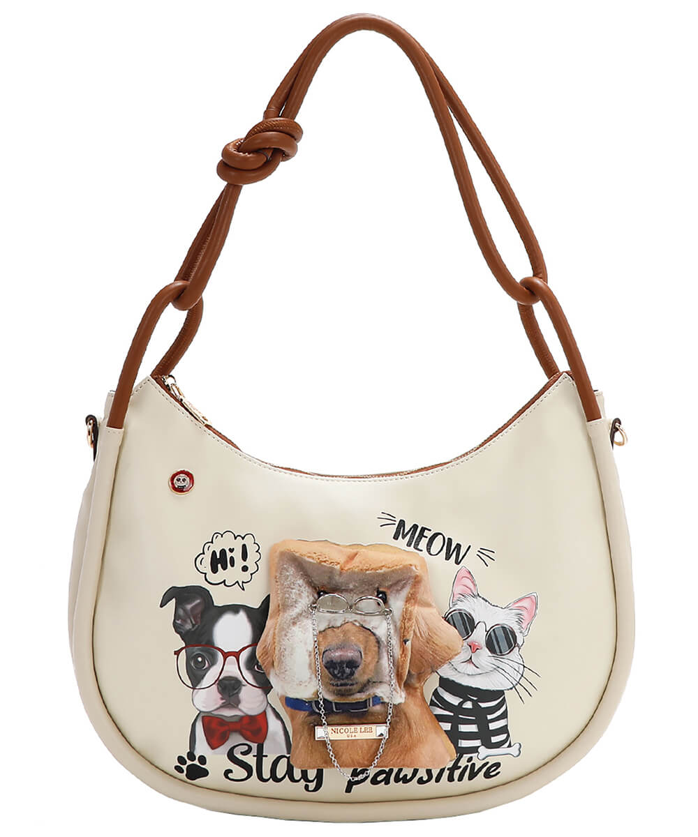A sculptural, hobo-inspired silhouette and sizeable interior make our Big Brother bag a reliable closet staple. Not only is it adorably charming, but it?s also crafted from buttery soft vegan leather and a playful plush dog with glasses for a pop of fun.