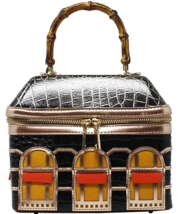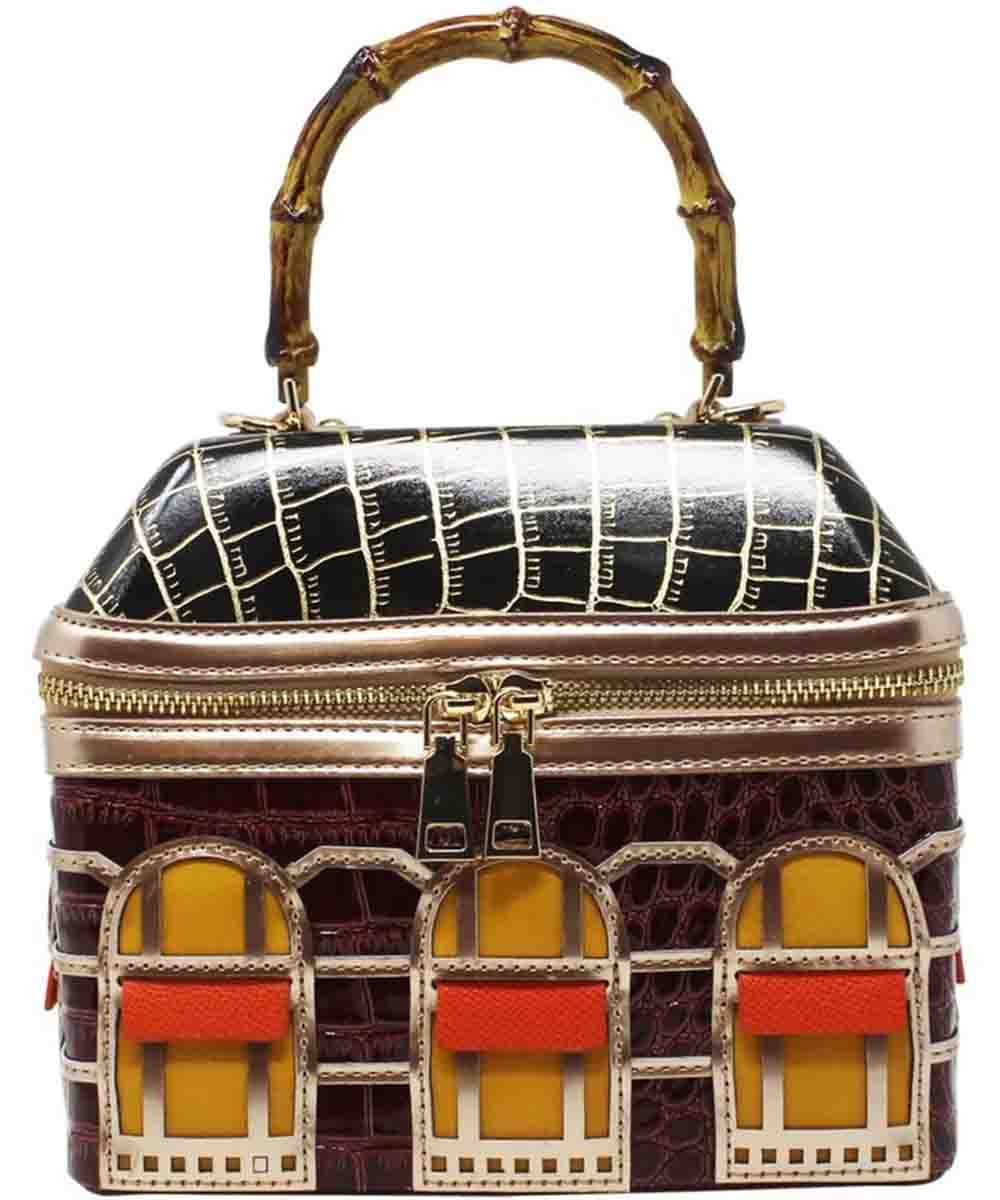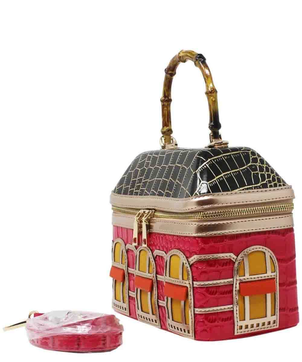 Crafted with a chic croc effect material, this bag boasts a unique house design,while the detachable shoulder strap offers versatile styling options.
