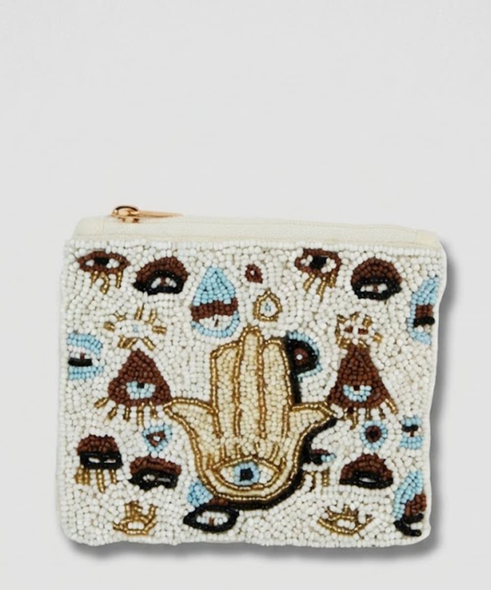 White Seed Beaded Smiley Face Coin Purse HD00208
