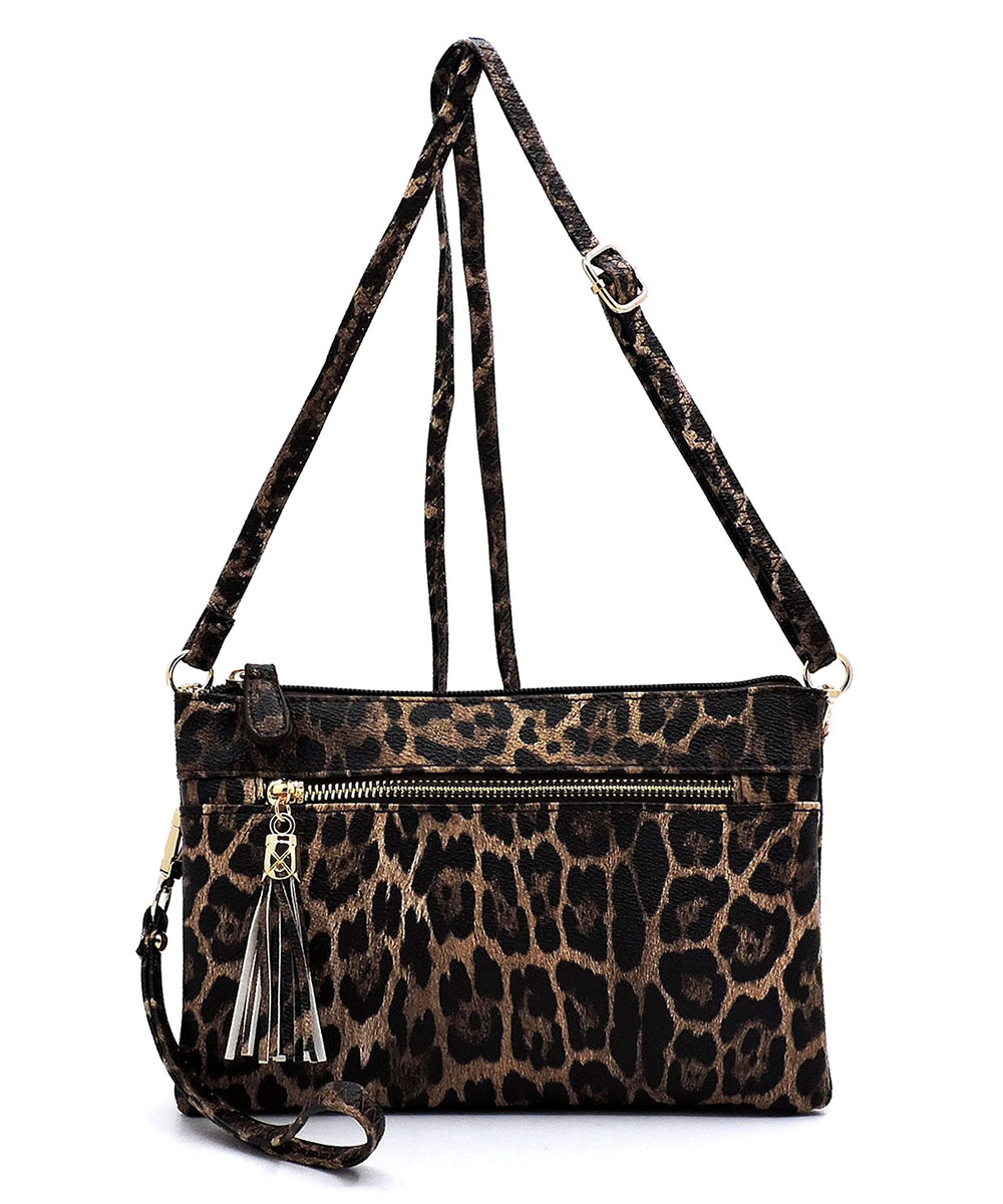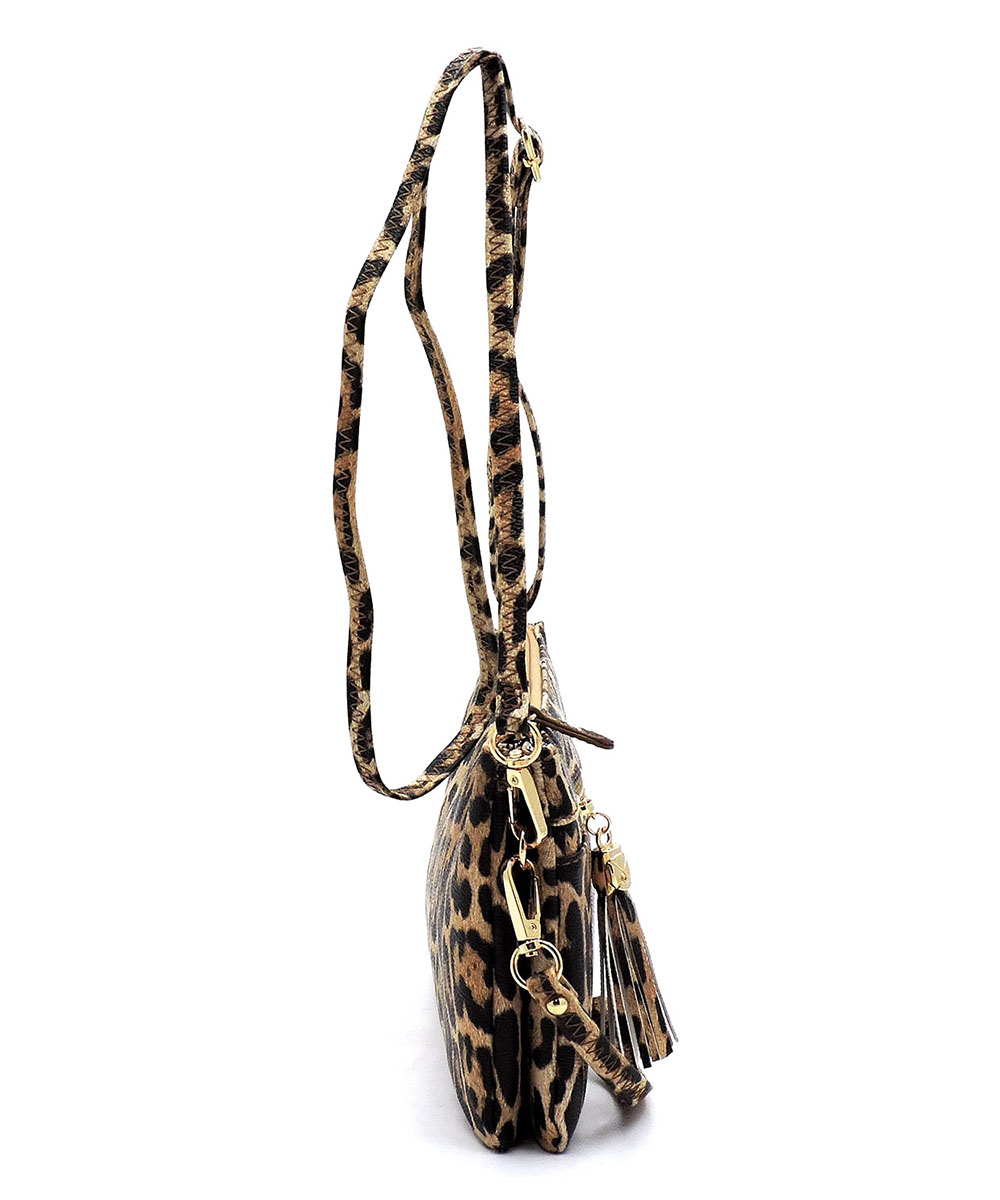 Leopard Multi Zip Pocket Crossbody Bag LE002 TAN
