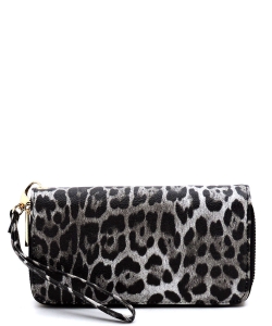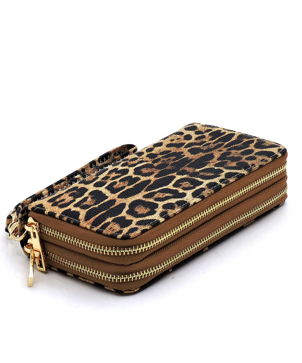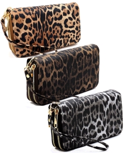 Leopard Double Zip Around Wallet Wristlet LE0012