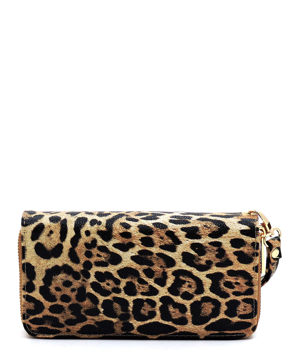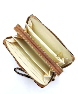 Leopard Double Zip Around Wallet Wristlet LE0012