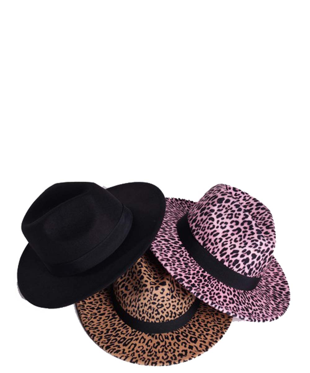 Leopard Fedora Hat HA320051 BROWN LEOPARD