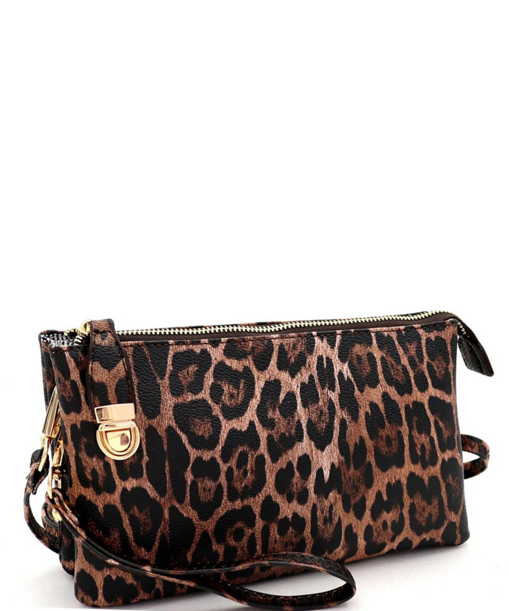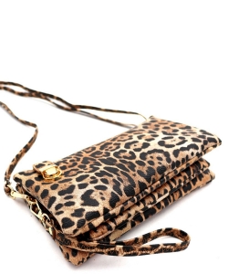 Leopard Print Push-Lock Cross Body LE020B Brown