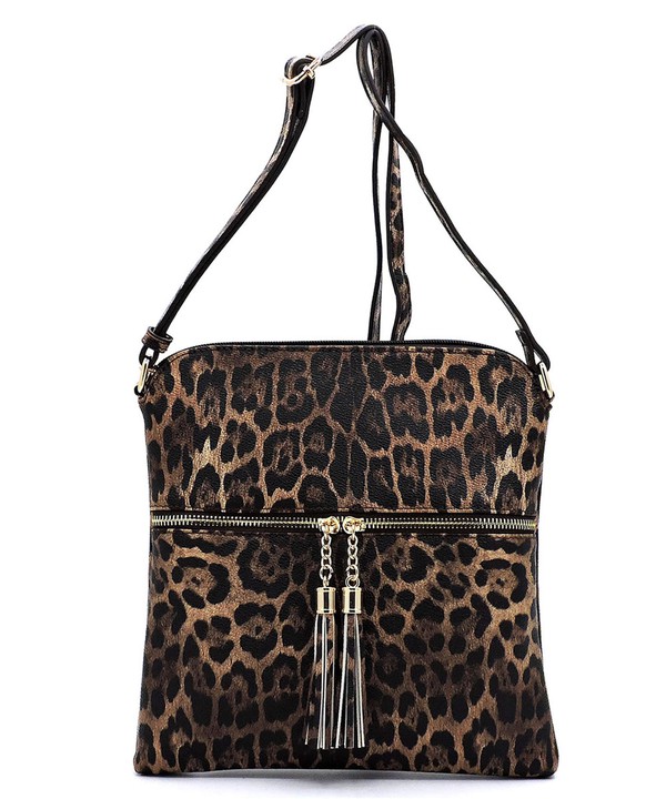 Leopard Zip Tassel Crossbody Bag LE062 BROWN