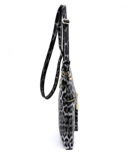 Leopard Zip Tassel Crossbody Bag LE062 BLACK