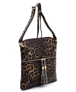 Leopard Zip Tassel Crossbody Bag LE062 BROWN