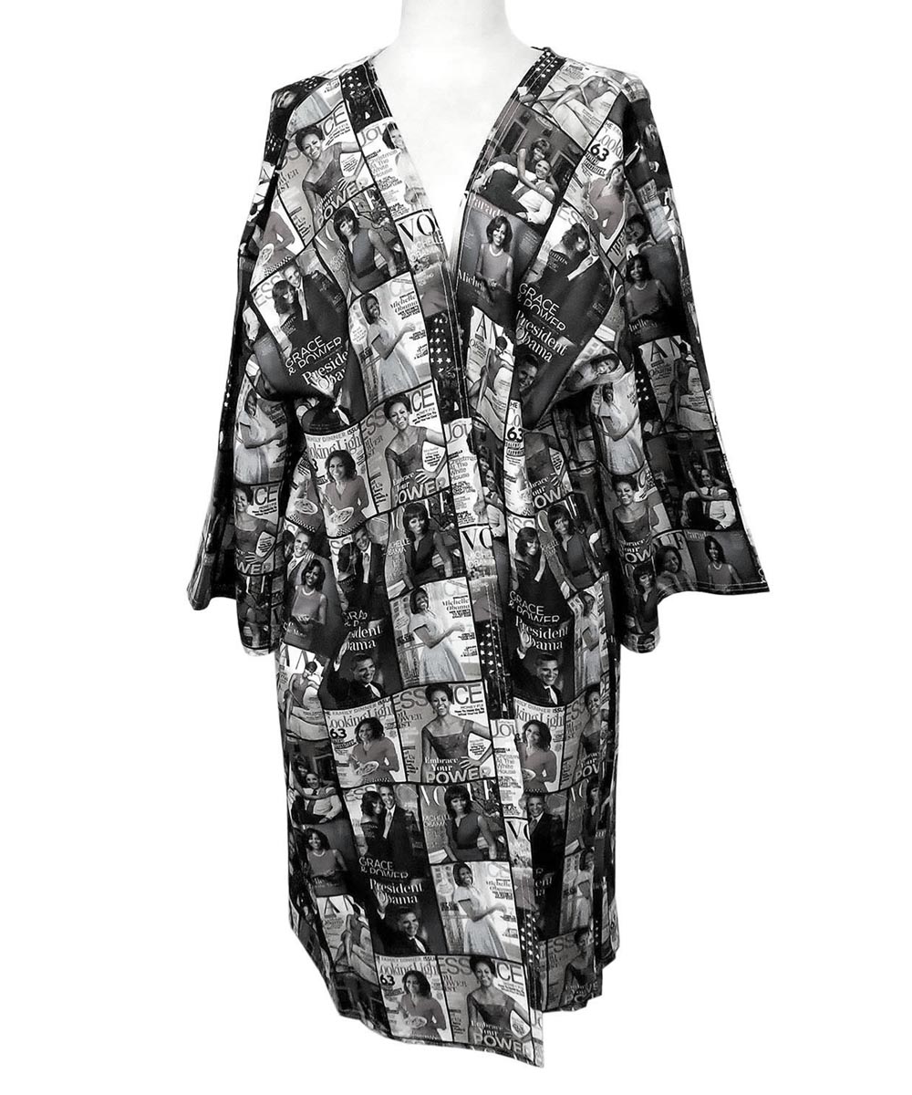 Magazine Cover Collage Kimono Gown OK112W MULTI