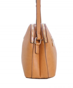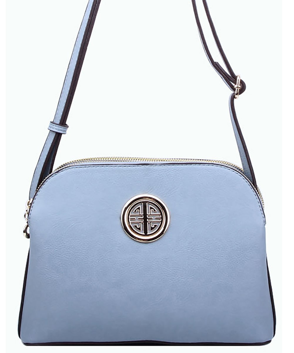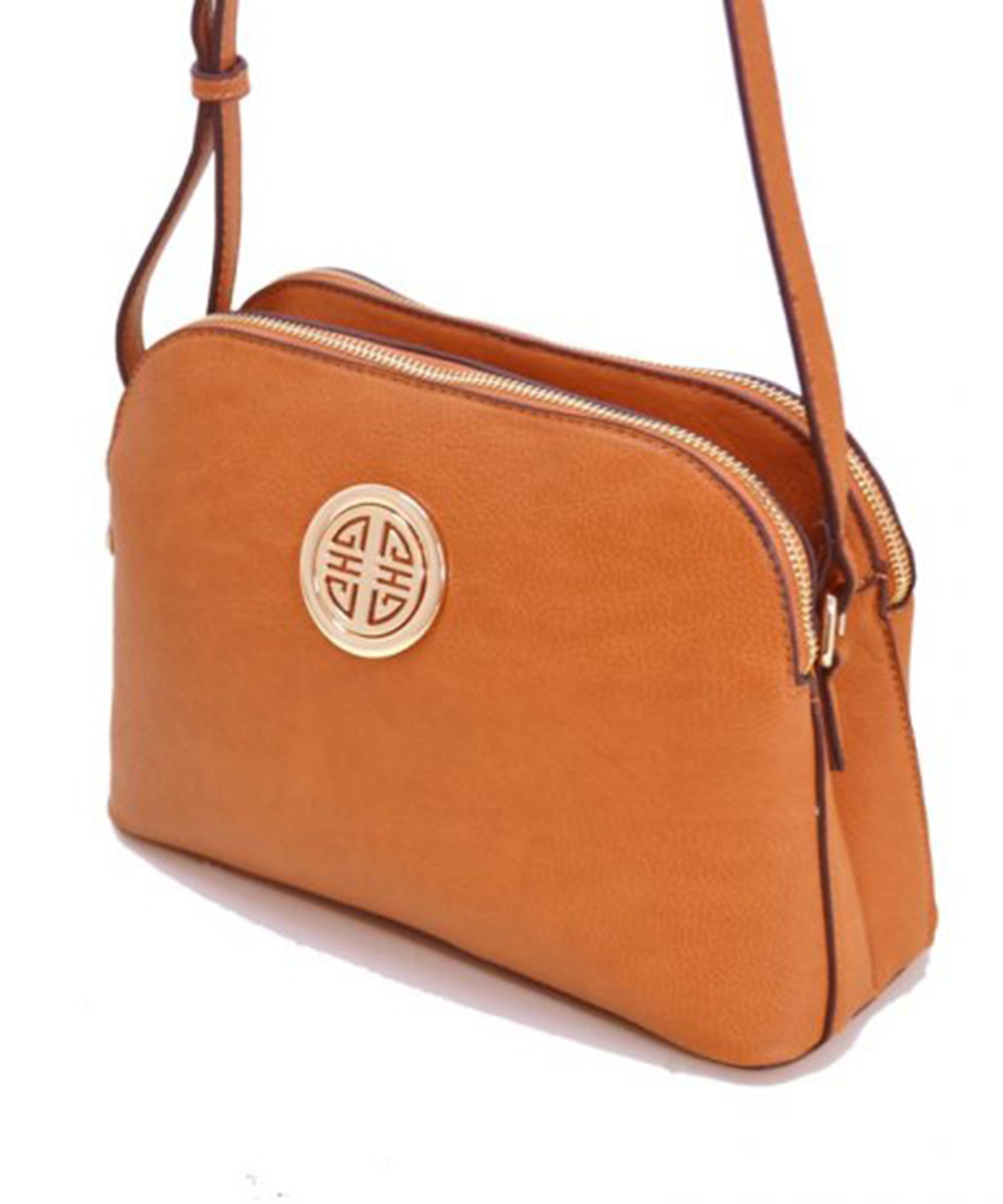 Material:Faux Leather Size: 10.5 "L X 4 "D X 7.5 "H *Fashion Faux Leather Emblem Messenger Bag *Triple Compartments *Zipper Top with Middle Magnetic Clasp Closure *Open Pockets Inside *Zipper Pocket Inside *Adjustable Shoulder Strap *Metal Feet on Bottom