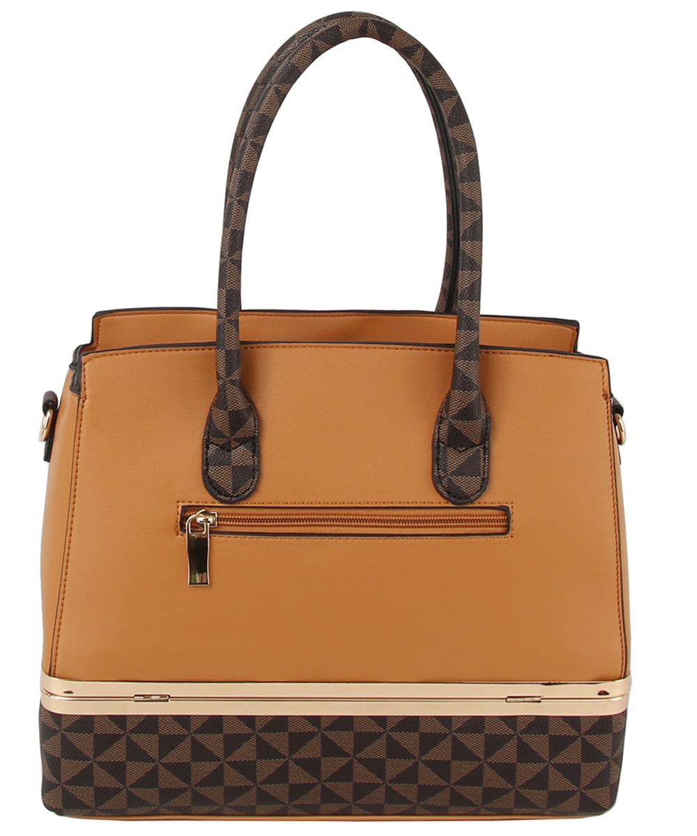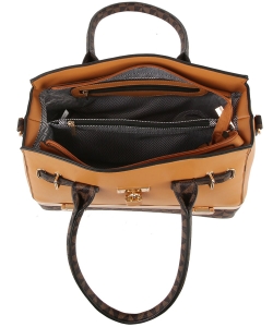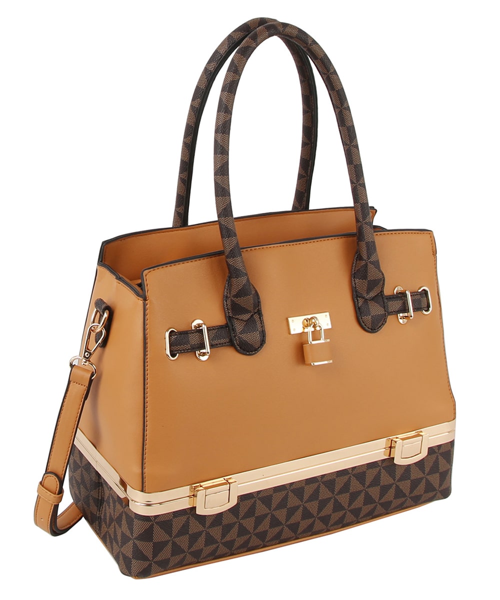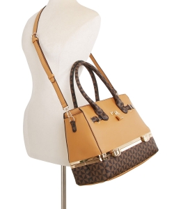 Monogram Colorblock Padlock Satchel LMN004 COFFEE