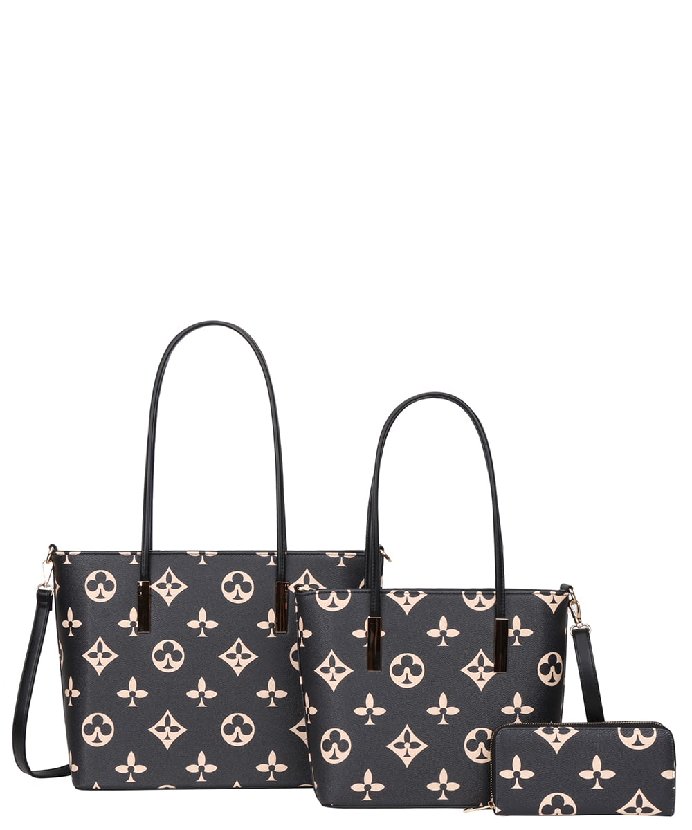 Monogram Print Shoulder Bag Wallet Set DH-8233S BLACK/BEIGE//