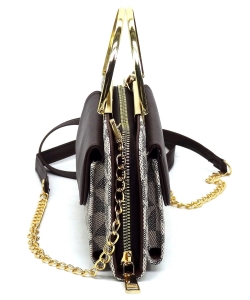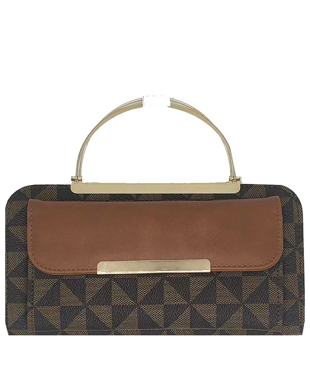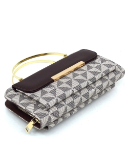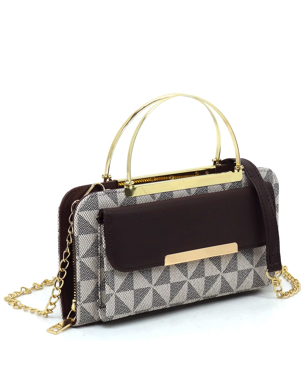 Monogram Round Top Handle Crossbody Bag Clutch Wallet PM038 COFFEE/TAN