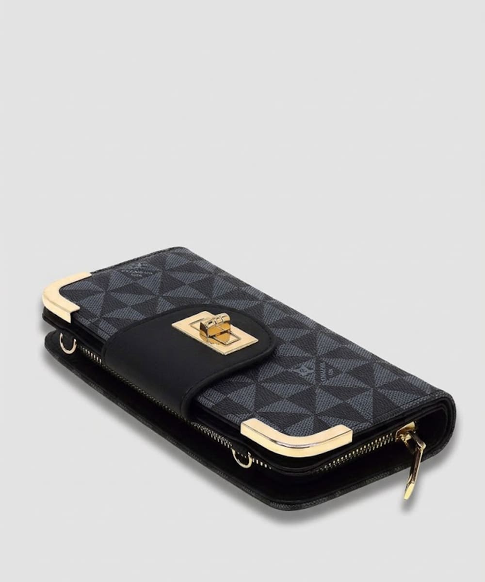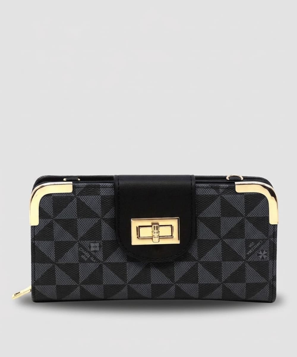 Monogram Turn Lock Crossbody Wallet PM041 BLACK