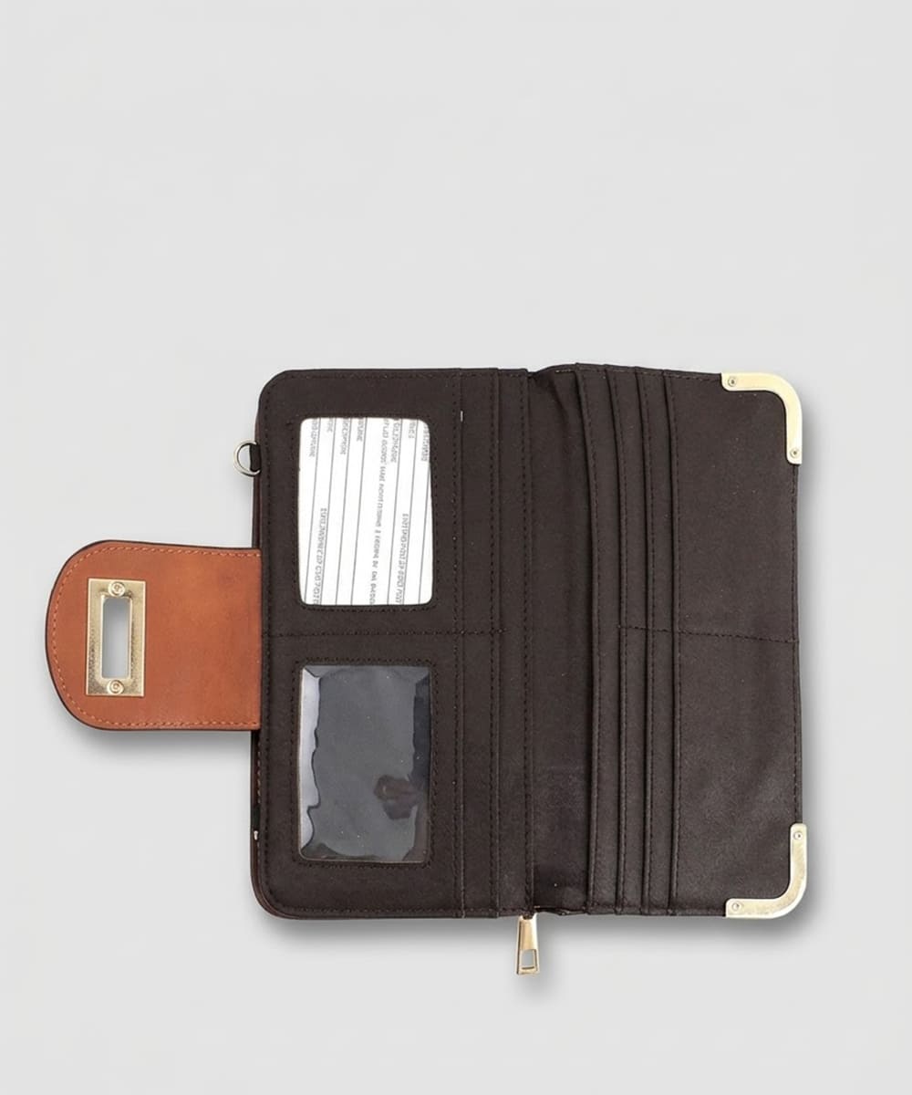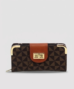 Monogram Turn Lock Crossbody Wallet PM041 COFFEE