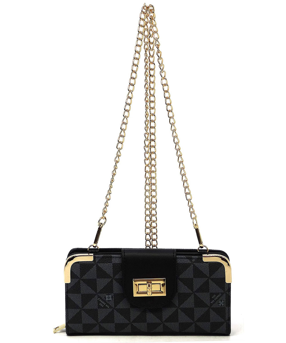 Monogram Turn Lock Crossbody Wallet PM041 BLACK