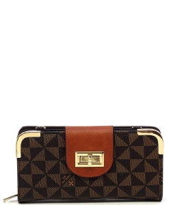 Monogram Turn Lock Crossbody Wallet PM041 COFFEE
