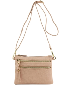 Crossbody Purse Bag Triple Zipper WU093 NUDE