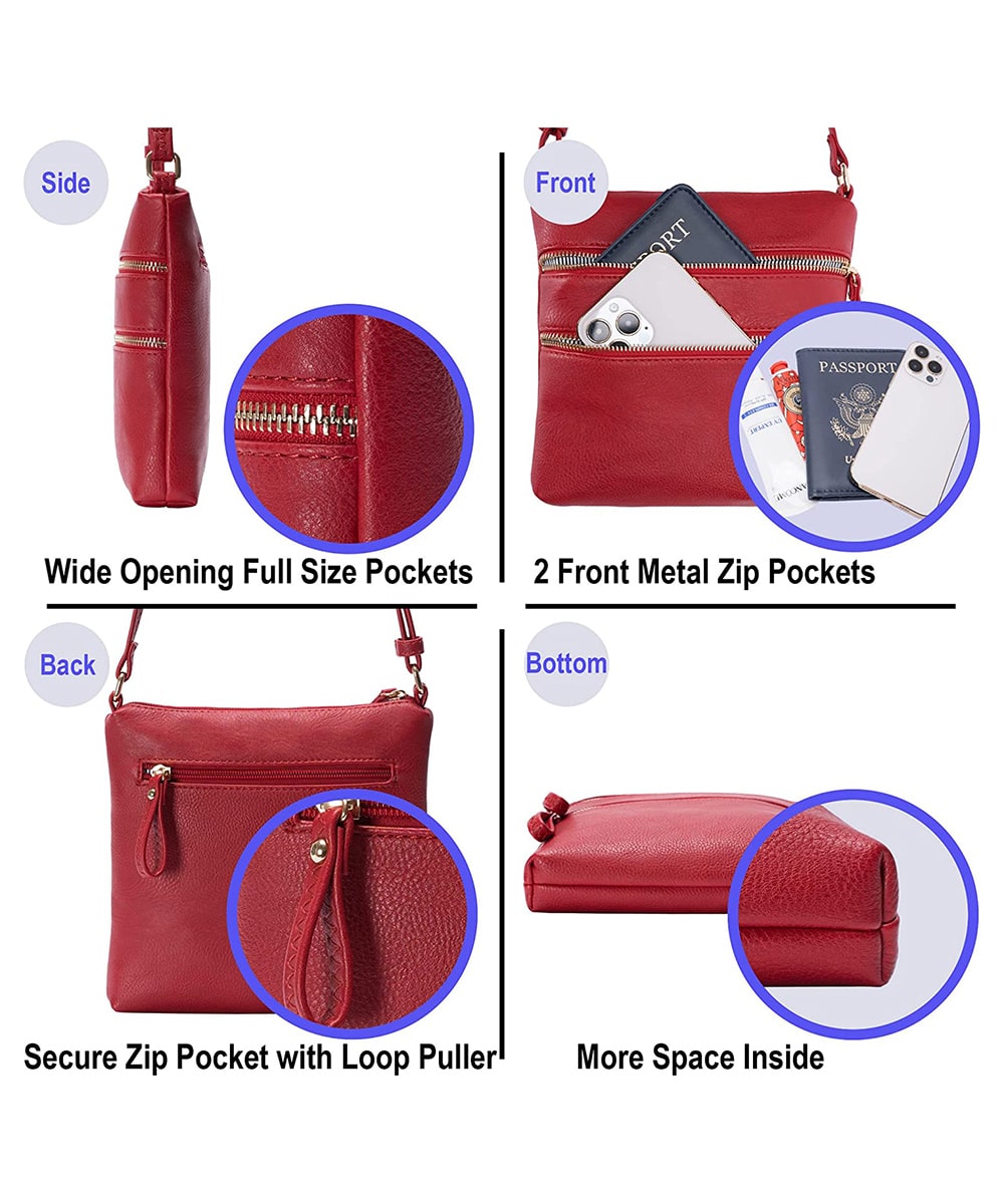 Multi Zip Pocket Crossbody Bag WU085 RED