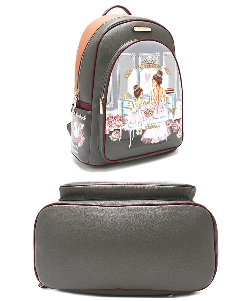 Wrap-around, two-way zip closure Front zip pouch Side slip pockets USB charging port on side