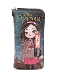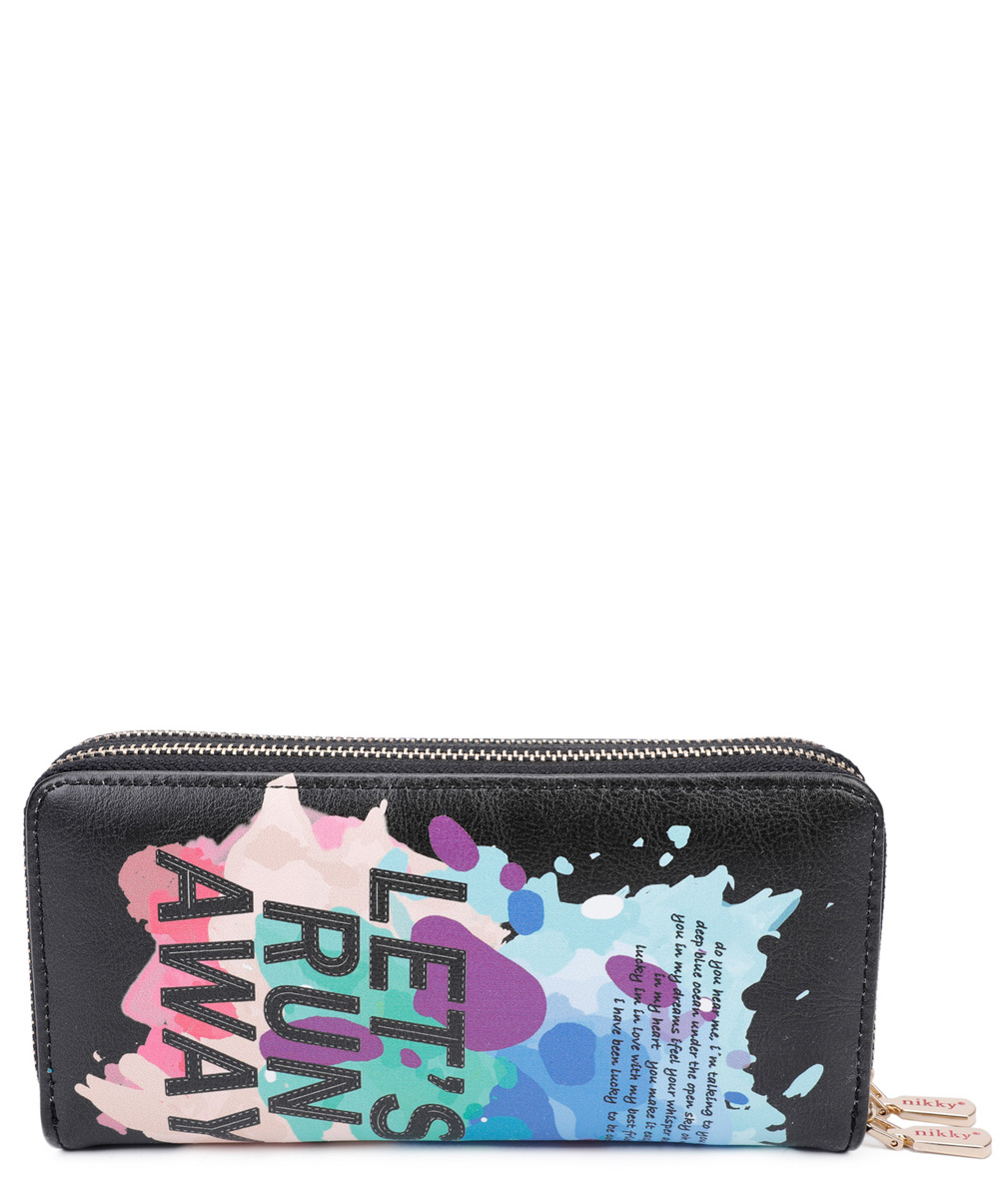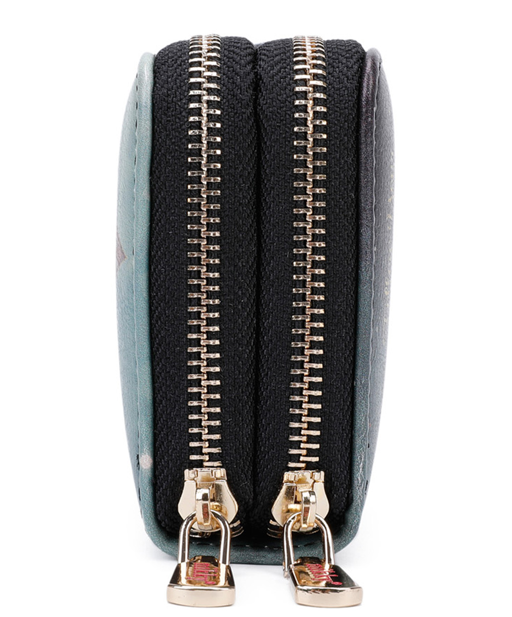 Interior Features: Spacious interior, 4 card slots, 4 cash slots with center zip-pocket divider. Lined with Nikky signature heart print fabric and eco-leather.