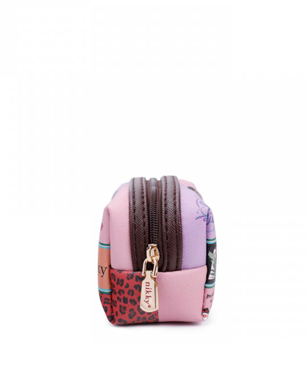 The Small Rectangular Binded Coinpurse is perfect to take change, Chap Stick or any small essential on the go and it fits anywhere! Exterior Features: Made of high quality eco-leather. Nikky Logo Nameplate at front. Binded main Zipper closure with Nikky logo on zipper pull. Interior Features: Spacious interior. Lined with signature Nikky nylon heart print fabric. For cleaning, wipe with damp cloth.