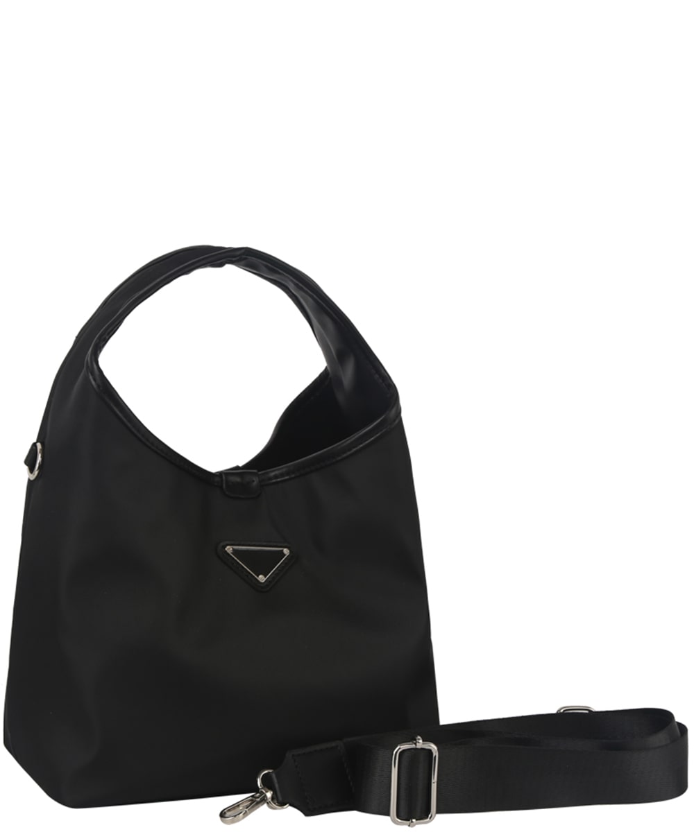 Nylon Triangle Plaque Shoulder Bag MEV-0015 STONE