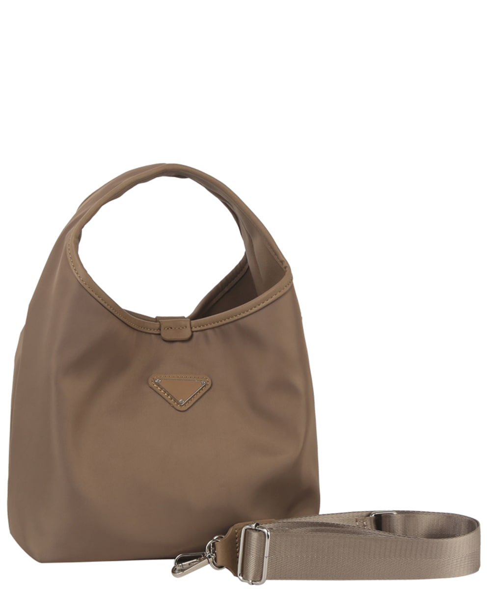 Nylon Triangle Plaque Shoulder Bag MEV-0015 STONE