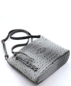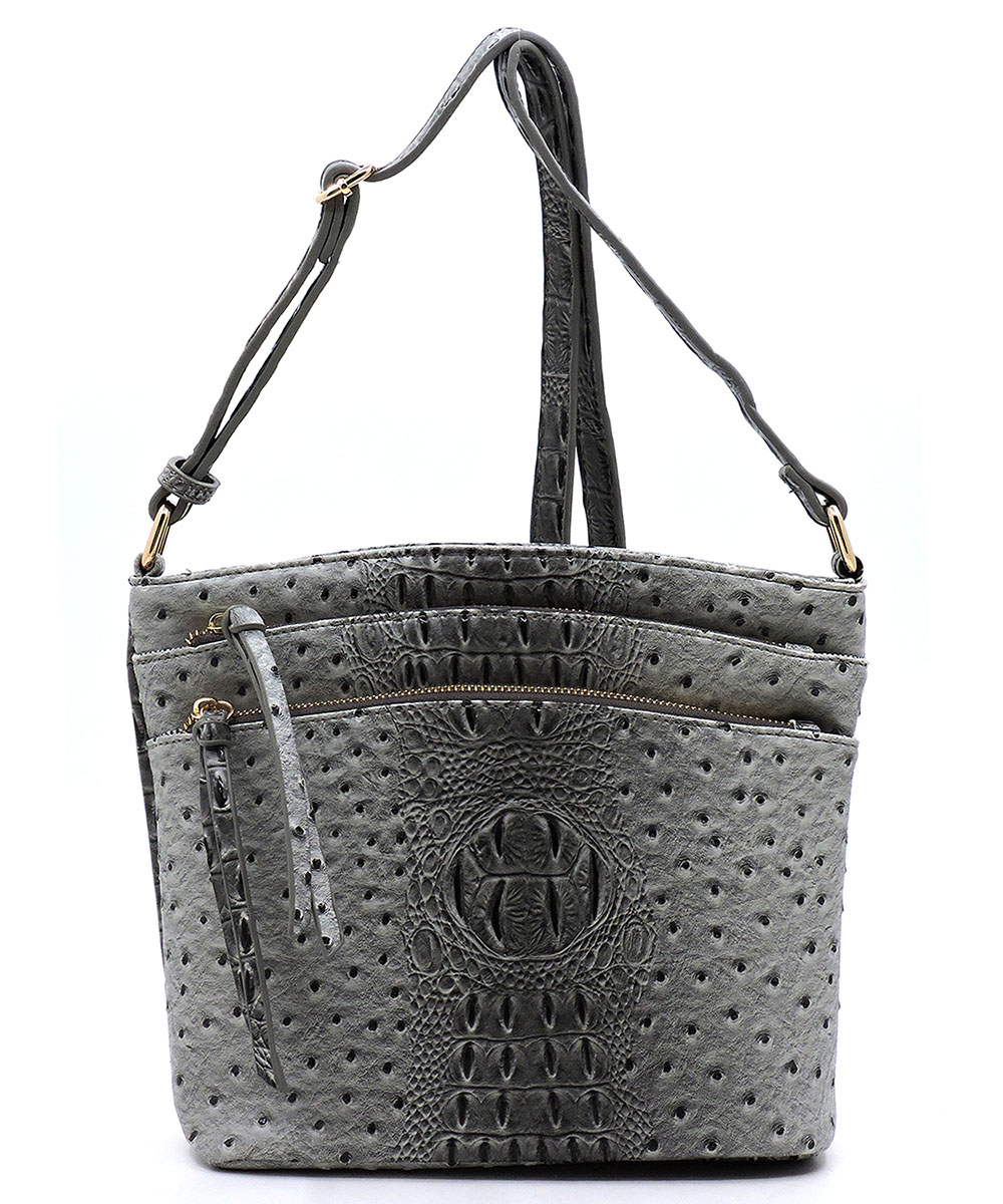 Ostrich Croc Multi Zip Pock...